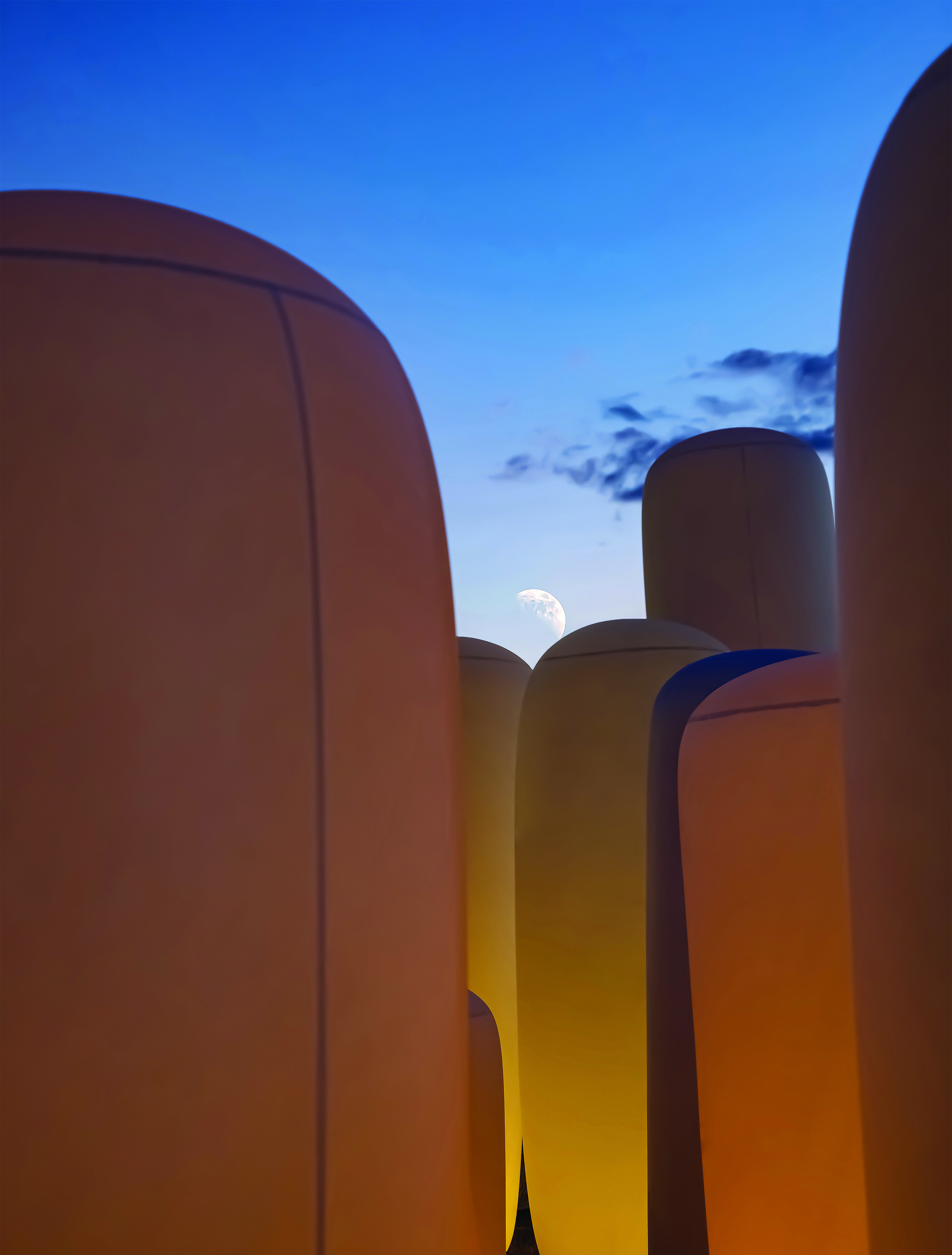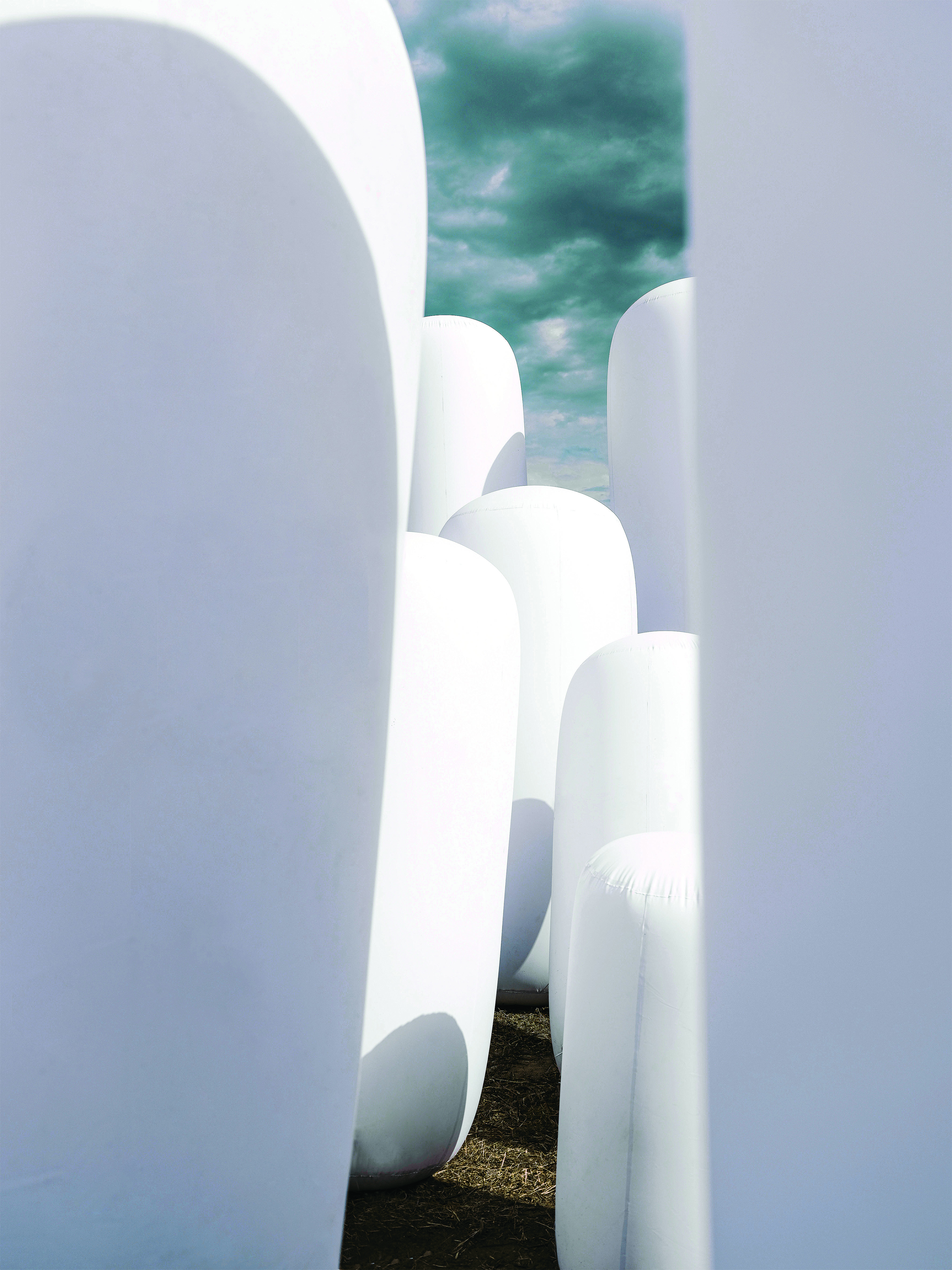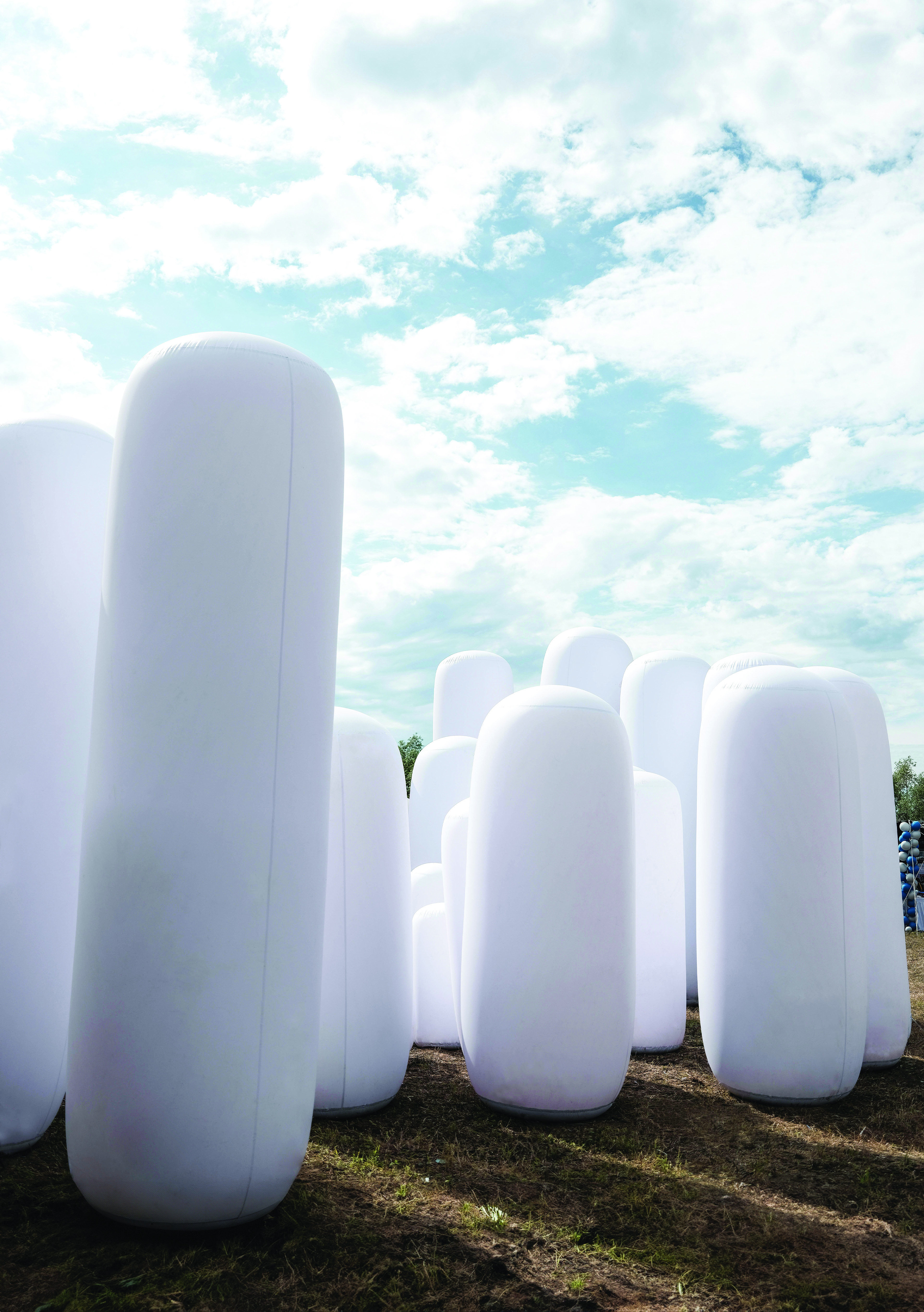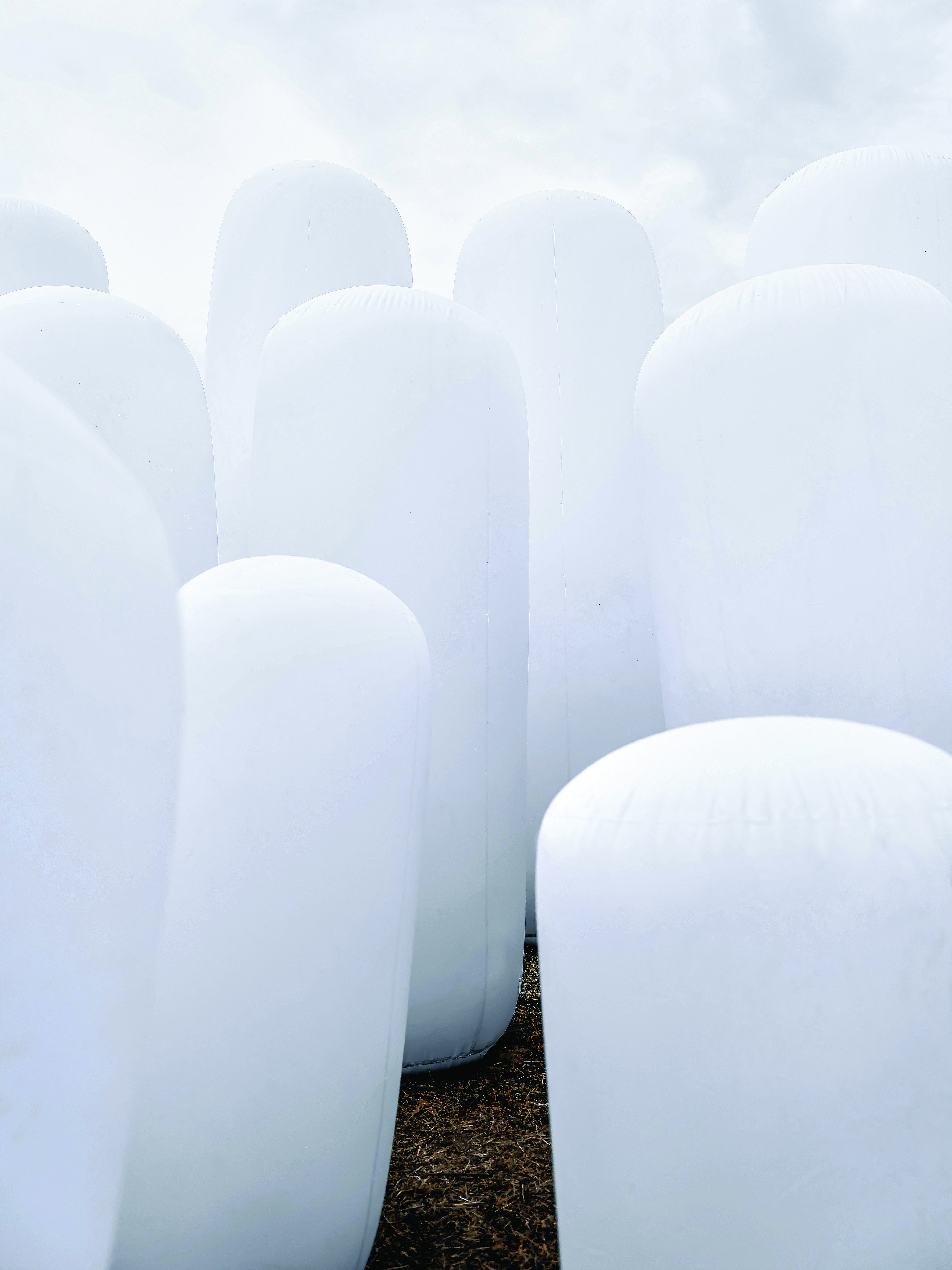 At the tail end of the summer of 2023, WAG Architects was invited to participate in the Longjiang Wetland Art Festival and designed a series of art installations that align with the wetland theme for the festival. Four art installations were set up in the picturesque Hulan Wetland. We aimed to use familiar elements and objects as a starting point to attempt to redefine the interaction between humans and nature in creative ways. "Dancing Stone Forest" is one of these installations. We hope to explore with visitors who love nature how humans and nature can coexist harmoniously, allowing the only home on which we depend for living to achieve sustainable development. The original inspiration for this project comes from one of the most common elements in nature—stones. Stones are also one of the origins of human architectural development. Thousands of years later, we can still see many magnificent stone-based relics on the earth. These are the ingenious treasures of prehistoric humans transforming the natural environment. One of the most iconic examples is the famous prehistoric monument, Stonehenge, on the Salisbury Plain in England. "The Dancing Stone Forest" is inspired by Stonehenge, symbolizing this common natural element of stones. Huge white inflatable pillars present the form of stones and encourage people to interact with the "stones" in a softer manner. In the vast Hulan Wetland, we seem to see the passage of time, with the great prehistoric relics welcoming their new life in a way more suited to this era. "The Dancing Stone Forest" covers an area of 63 square meters. Thirty giant white pillars are arranged in a double spiral, forming a stone circle that invites people to enter and explore.