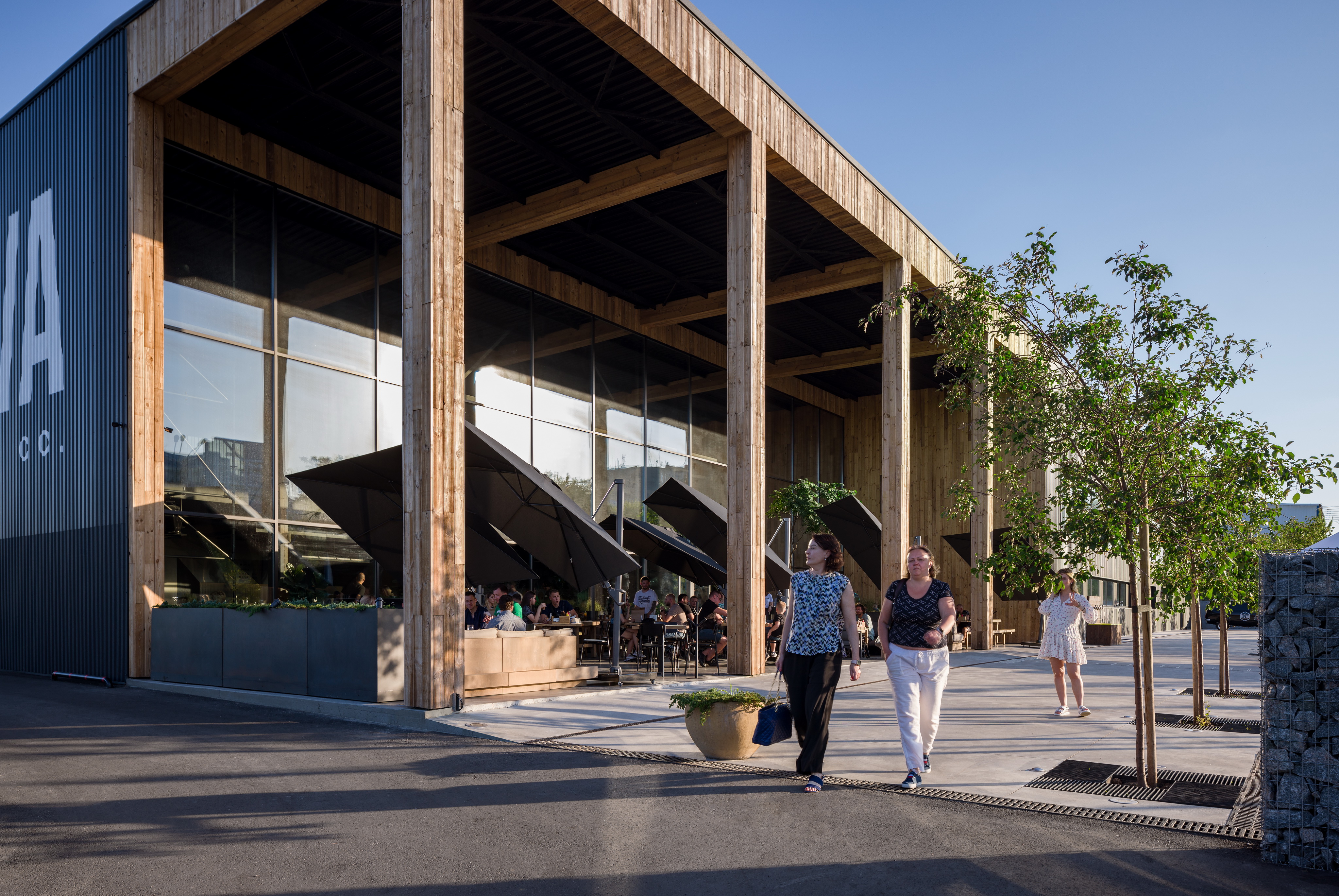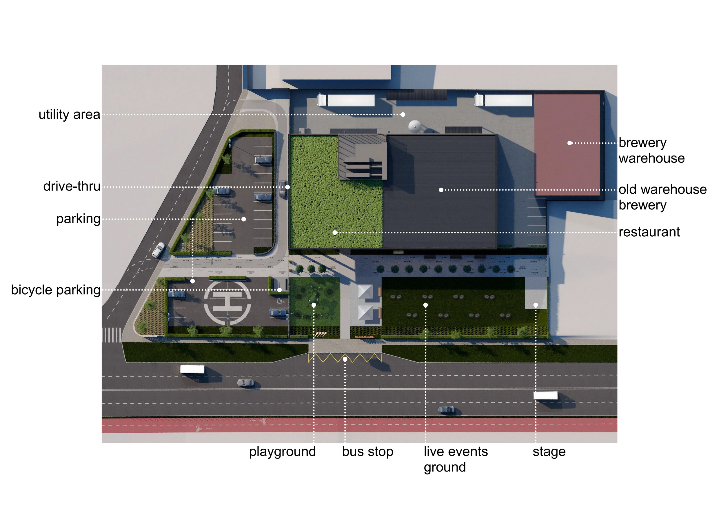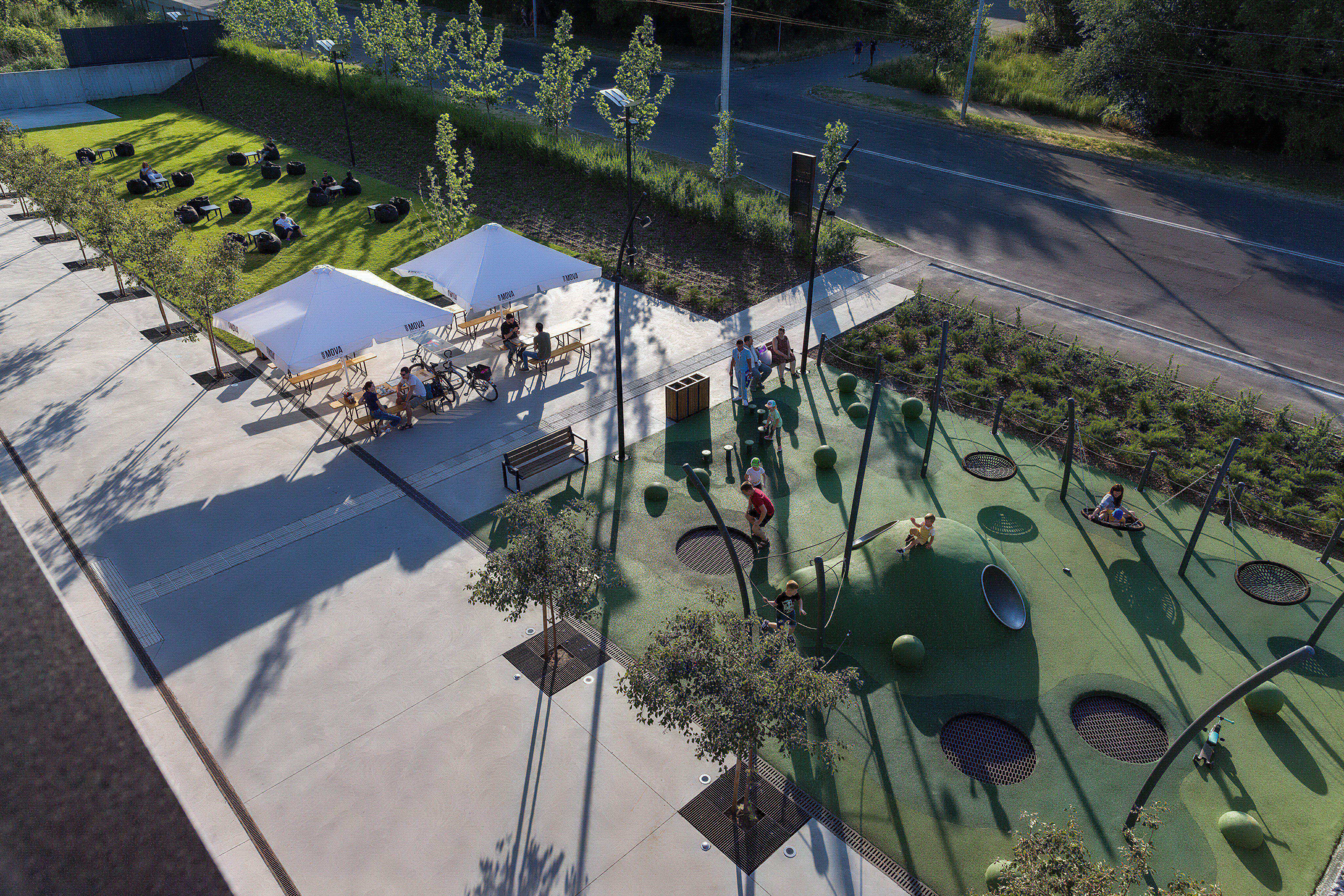 MOVA Brewery is a story of industrial heritage revival in Dnipro, where an abandoned Soviet-era factory was transformed into a contemporary multifunctional hub with a brewery, restaurant, offices, and a landscaped public realm. The project redefines the post-industrial identity of the city, creating a vibrant destination for the community and a catalyst for the development of an industrial park. The architectural concept balances memory and modernity. The original steel frame and precast reinforced concrete structures were preserved, while local materials such as steel, glass, and wood were applied to emphasize a brutal yet functional aesthetic. Decorative finishes were deliberately avoided in favor of authenticity and durability. Compact building volumes with optimal daylighting and dynamic solar protection ensure energy efficiency, while open layouts allow the space to adapt easily to new functions. Landscape played a crucial role in reconnecting the site to its natural surroundings. Native planting, carefully integrated pedestrian links, and unexpected green interventions softened the industrial setting and shaped an inviting urban atmosphere. The public spaces around MOVA became a point of attraction not only for visitors but also for the city’s wider community. Sustainability is at the core of the project. Among the key technologies are heat pumps, a solar power station, a solid-fuel steam generator for heating and production, as well as heat recovery systems for public spaces and brewing processes, including re-use of pre-heated water. A ventilated façade system and additional insulation exceeding local standards by 30% further reduce energy demand. MOVA demonstrates how a sustainable approach can unite industrial heritage with contemporary technology and ecological responsibility. More than a brewery, it is a cultural and architectural landmark that exemplifies resilience, adaptability, and community-driven transformation in Ukraine’s urban landscape.