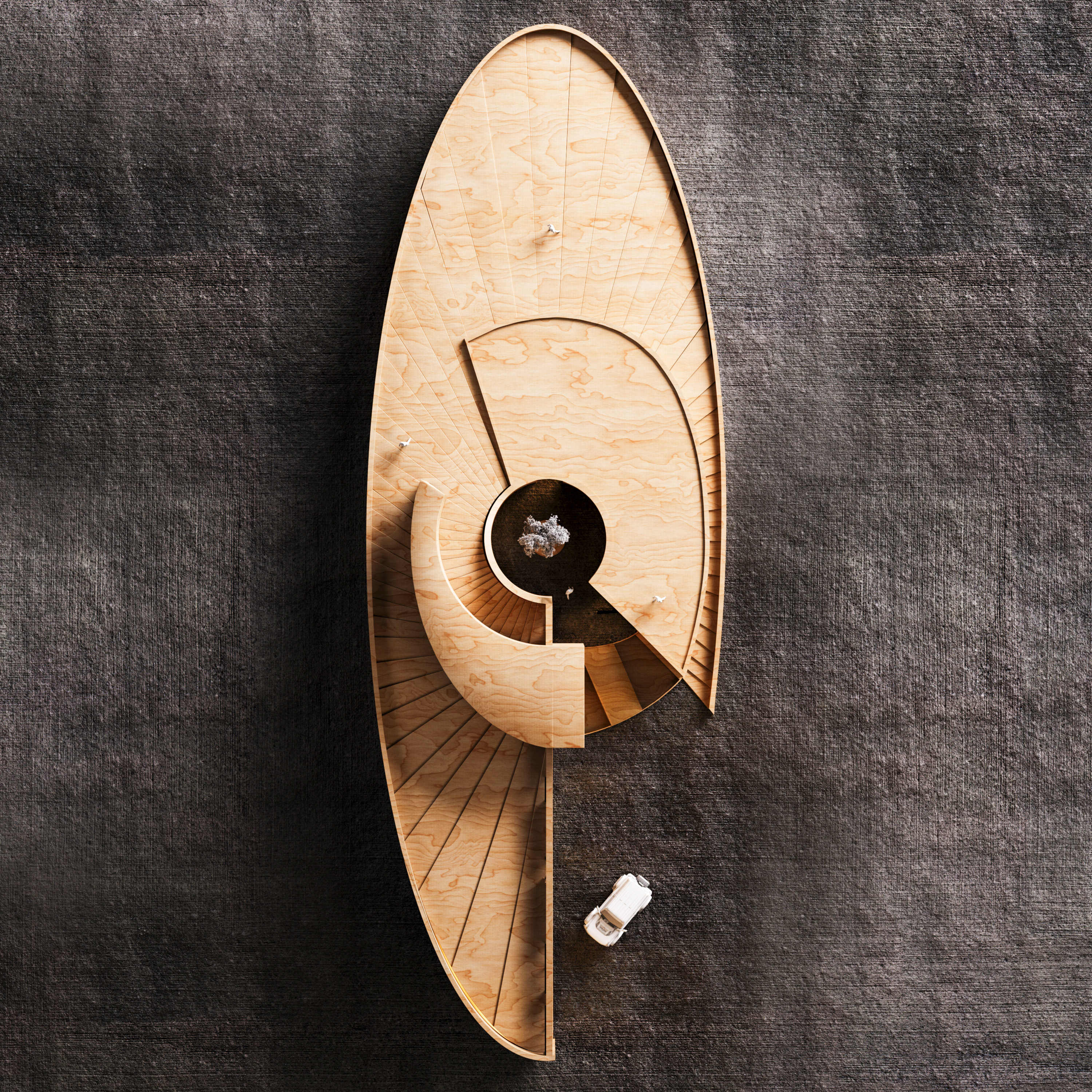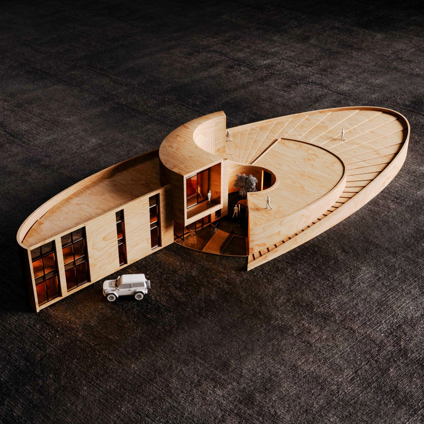 Savan House is not merely a villa but a spiritual and spatial journey in the temperate forests of northern Iran where architecture becomes a dialogue between human presence, nature and time. The name comes from the Gilaki word Savan meaning a semi open threshold between inside and outside, refuge and openness. Inspired by the spiral geometry of a snail shell, the design symbolizes continuity and ascension. The journey begins at the forest edge, moves into the contemplative calm of a courtyard and culminates on a rooftop with boundless views. Gradual shifts in scale, light and elevation guide the user from openness toward serenity. Three main challenges shaped the project: ensuring privacy while remaining open to views, achieving climatic responsiveness in a humid environment and integrating a contemporary form into the natural site. The result is a design that collaborates with nature rather than imposing upon it. Traditional Iranian layering between inner and outer realms is reinterpreted as spatial strategy. Public functions extend to the edges while private spaces cluster around the courtyard, the social and climatic heart of the house. This core provides pause, interaction and comfort through cross ventilation and daylight control. Exposed concrete defines the primary structure, chosen for durability in humidity and for its honest expression of material. Minimalist massing reduces unnecessary elements while retaining geometric dynamism. Semi open façades channel breezes and frame views of forest and sky, embedding nature within everyday life. Movement unfolds as narrative, from forest openness to courtyard stillness and upward to the horizon. By combining organic form, climatic intelligence and cultural depth, Savan House reinterprets Iranian heritage while offering a multidimensional dwelling experience.