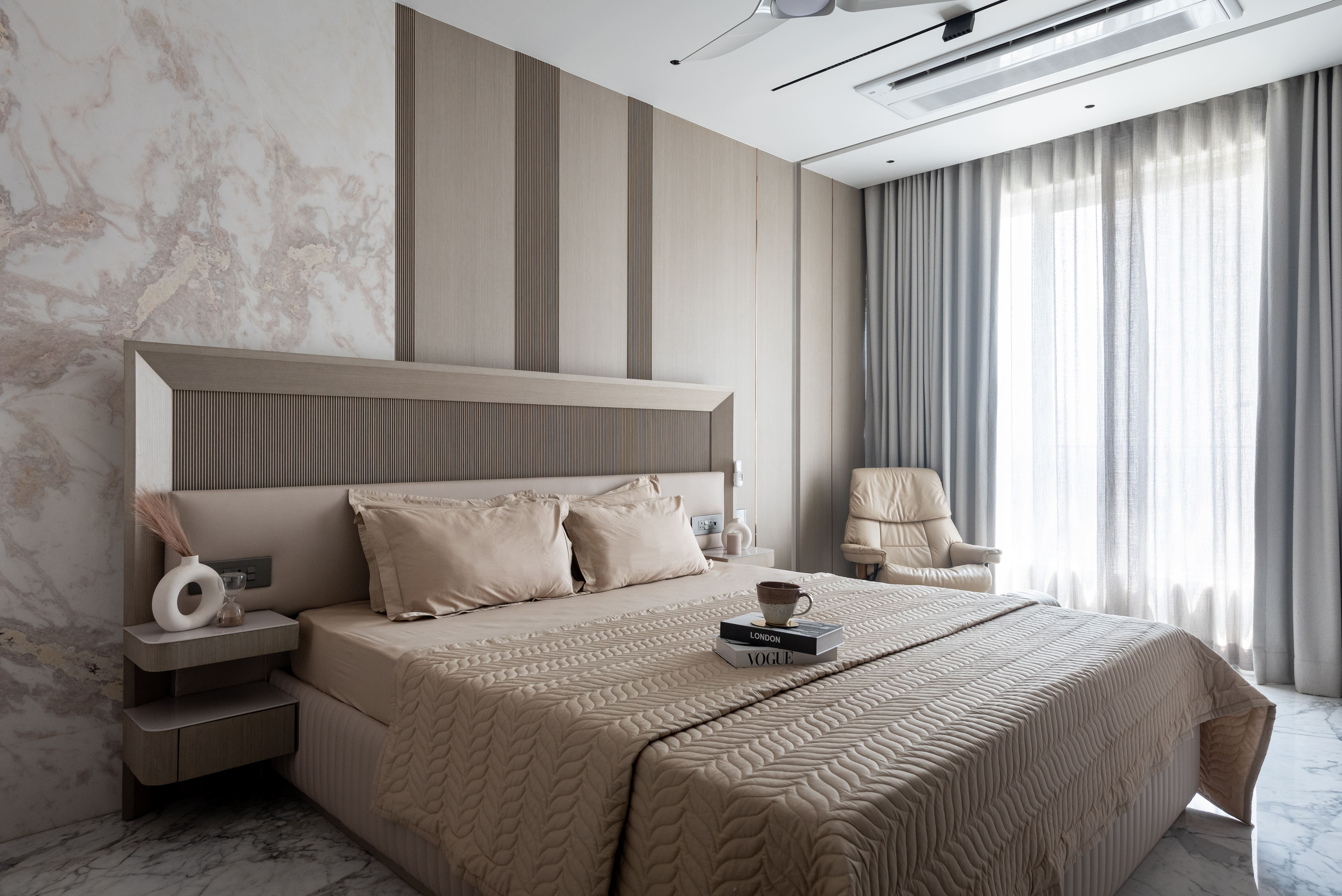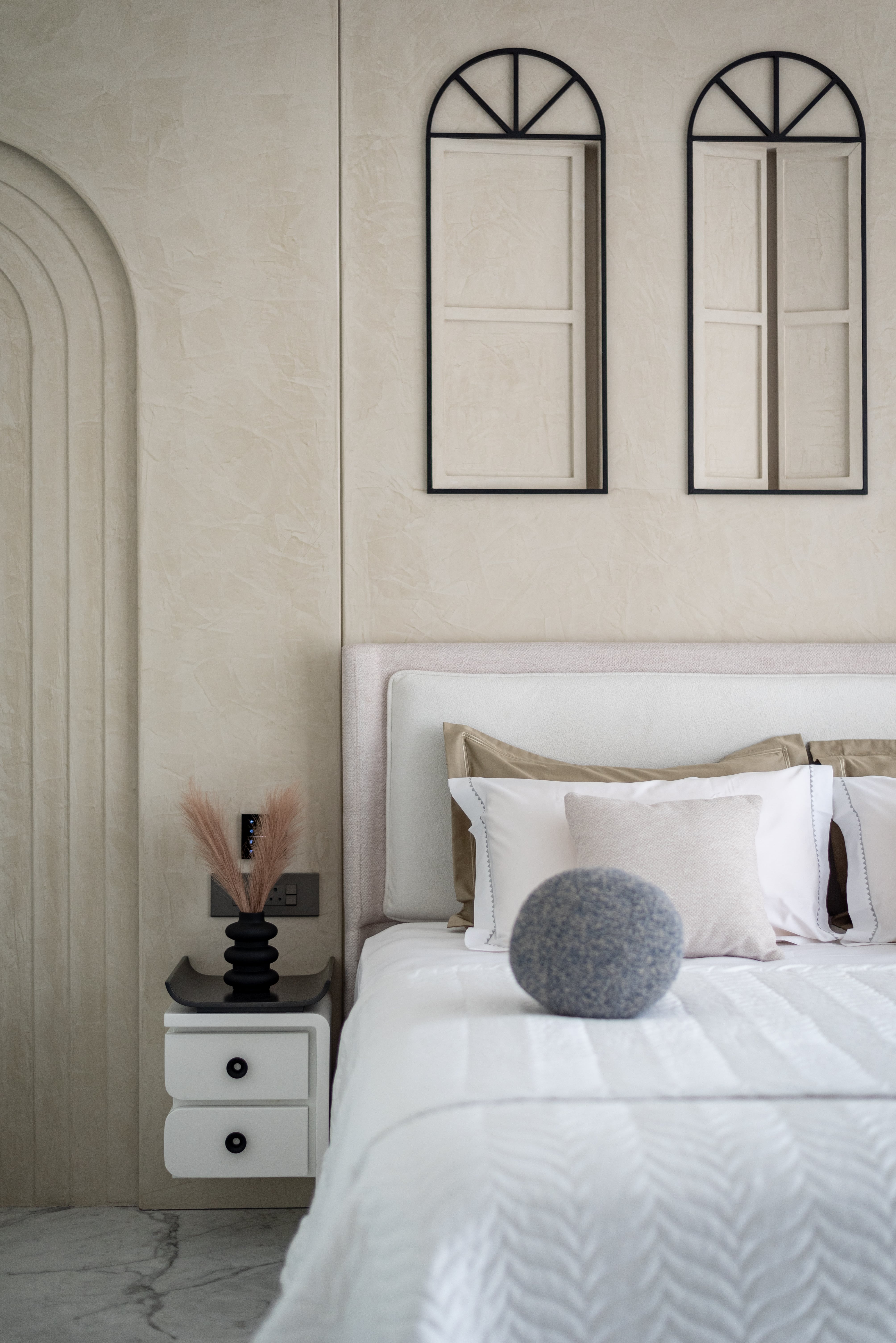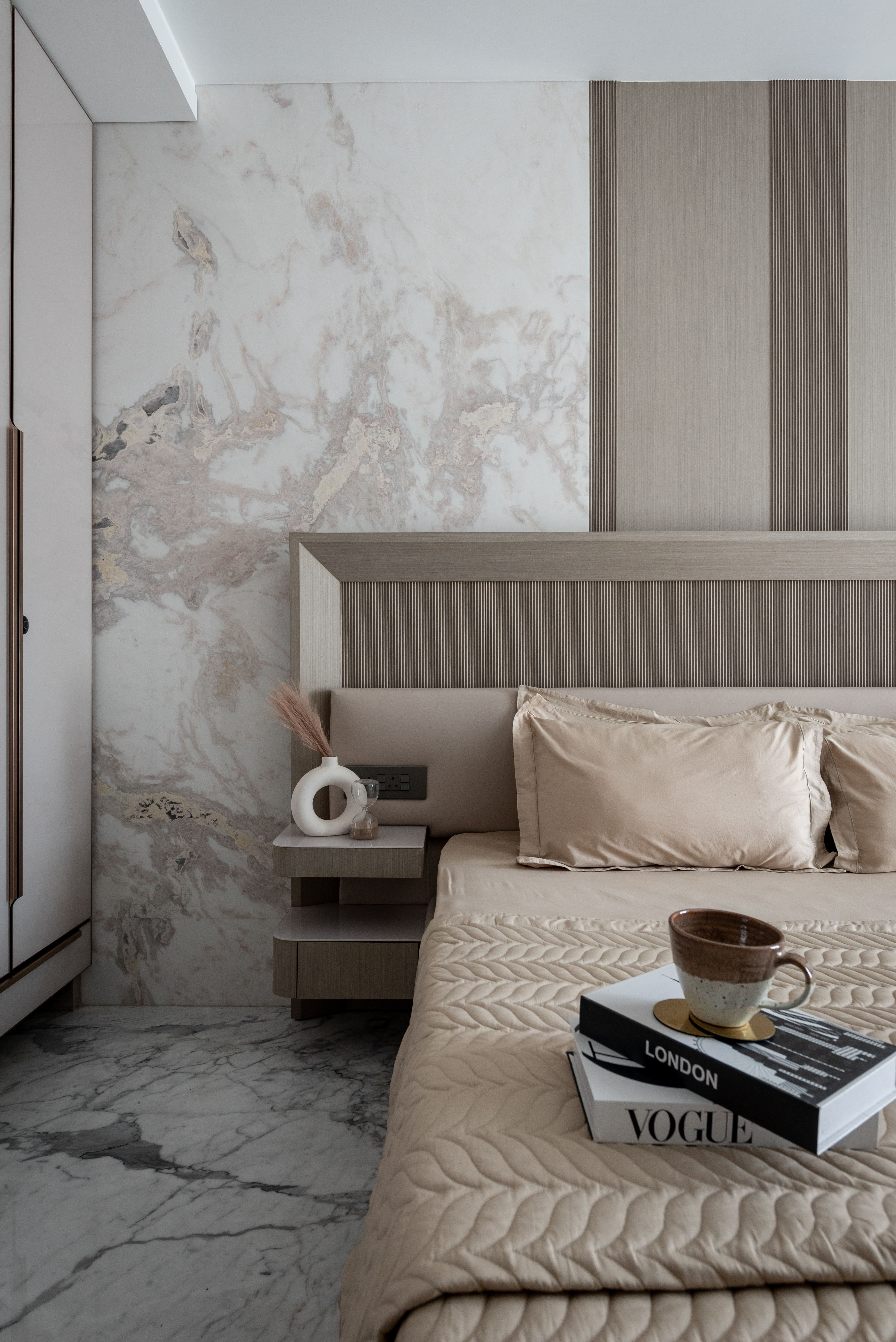When a longtime client returned with the brief to create something “unforgettable,” GroupARC envisioned a residence that redefines domestic luxury through craftsmanship and material exploration. Spanning 2,200 sq.ft. in suburban Mumbai, the home was designed in tandem with the son’s wedding—demanding a duality of expression: festive in spirit yet timeless in character. Natural stone forms the project’s backbone, explored not just as surface but as a medium of detail. Italian Statuario marble transitions from polished expanses across the floor to hand-carved fluted bands in the living room niche, each 6mm groove painstakingly finished on site. The same interplay of plain and fluted textures extends into the powder bath. A single veneer shade carries this dual language forward, expressed in smooth and ribbed planes to create subtle rhythm and continuity. Private spaces adopt distinct moods within this framework. The son’s suite breaks away from stone and veneer, emerging as an ethereal “white mahal” defined by textured paint and sheer drapery, while other bedrooms highlight unique stone accents and crafted details. Bathrooms are conceived as wellness chambers, each distinguished by singular stones and immersive fittings that elevate daily rituals. Designed around a moment of cultural significance, the house balances festive exuberance with enduring calm. It is as much about orchestrating mood through light, texture, and materiality as it is about creating architectural order. What emerges is a residence crafted with the precision of a couturier and the sensitivity of an artist—contemporary, celebratory, and profoundly personal. 27 Oberoi Enigma is less a residence and more a statement: of craft, of continuity, and of the belief that true luxury is born from authenticity of material and intensity of detail.