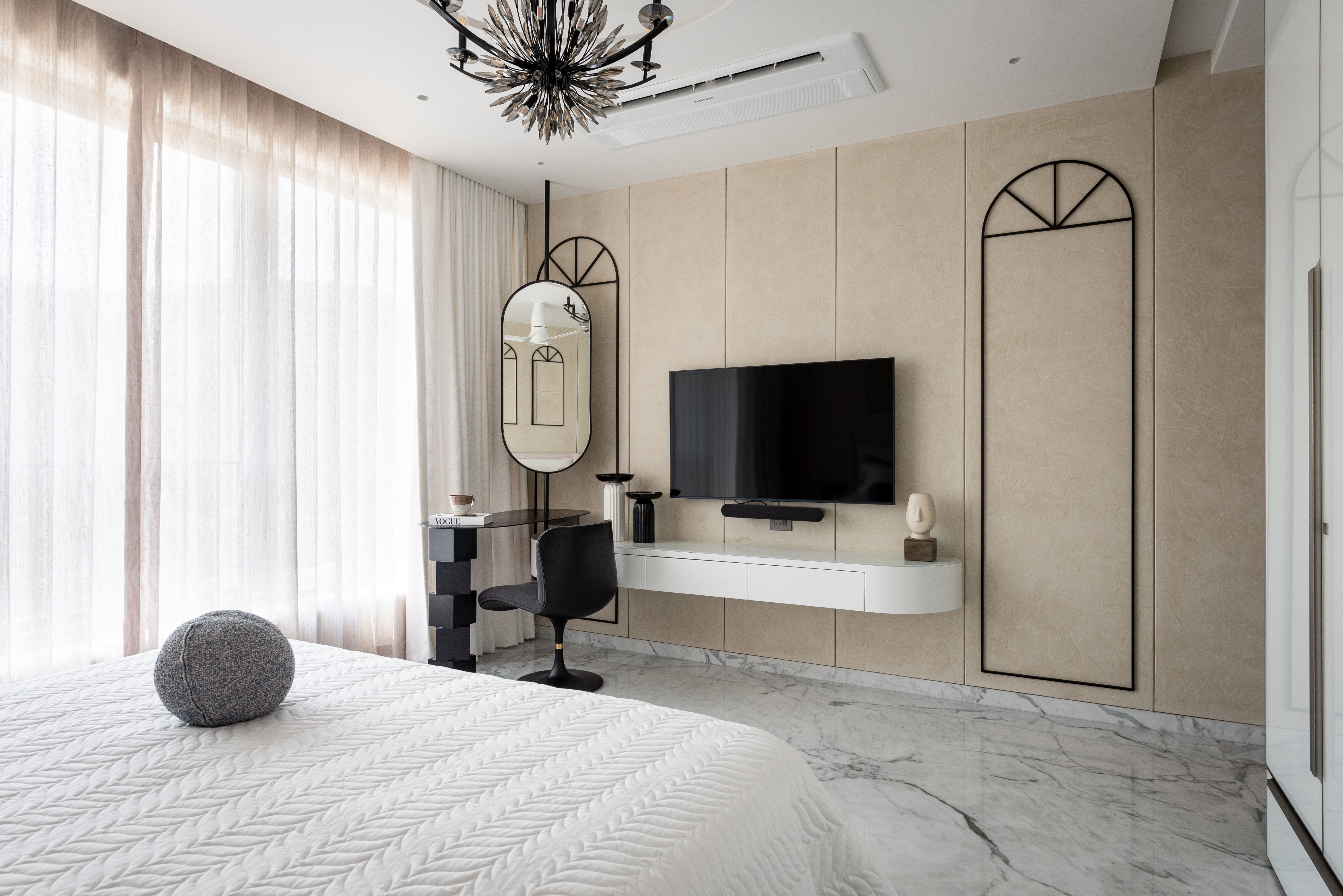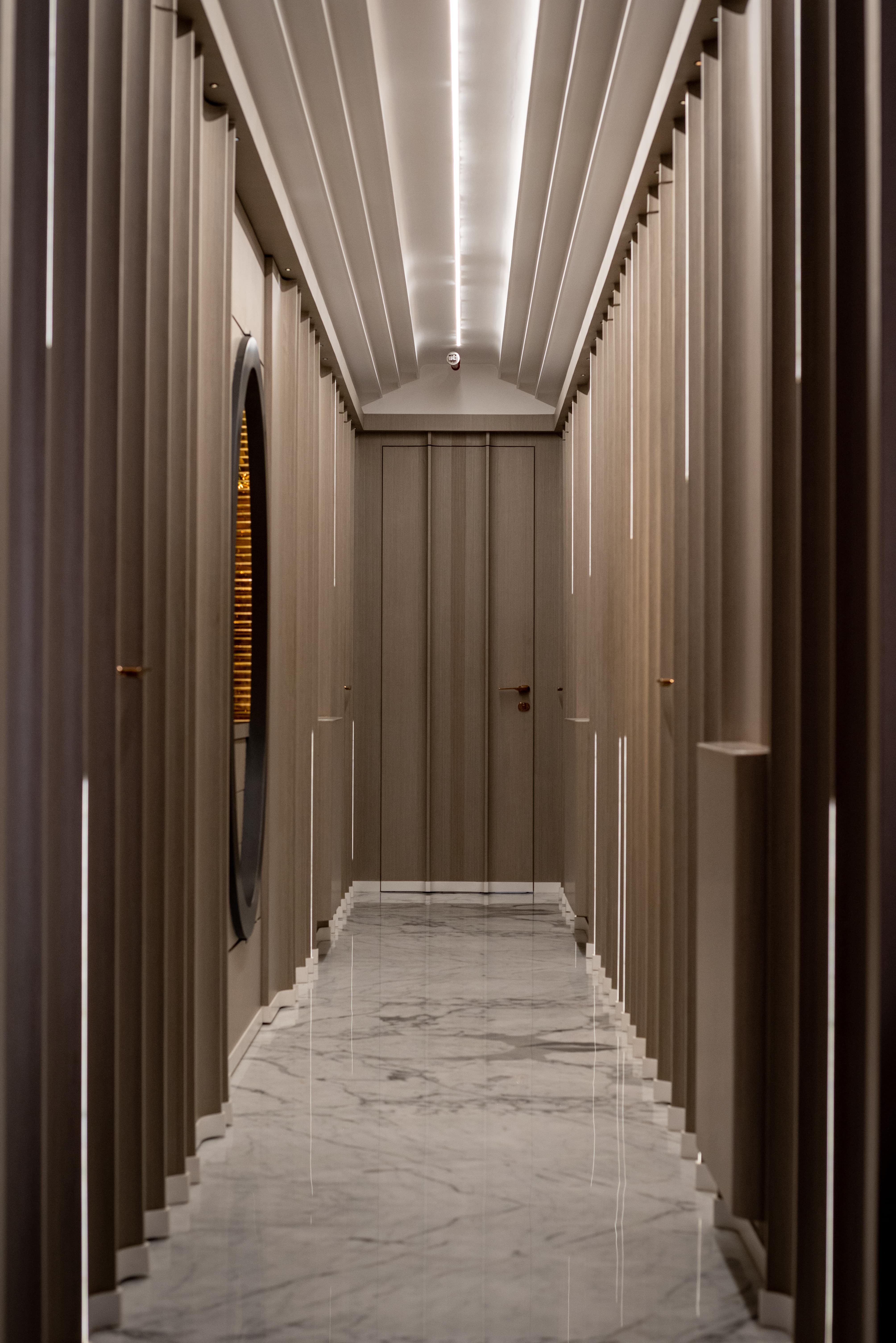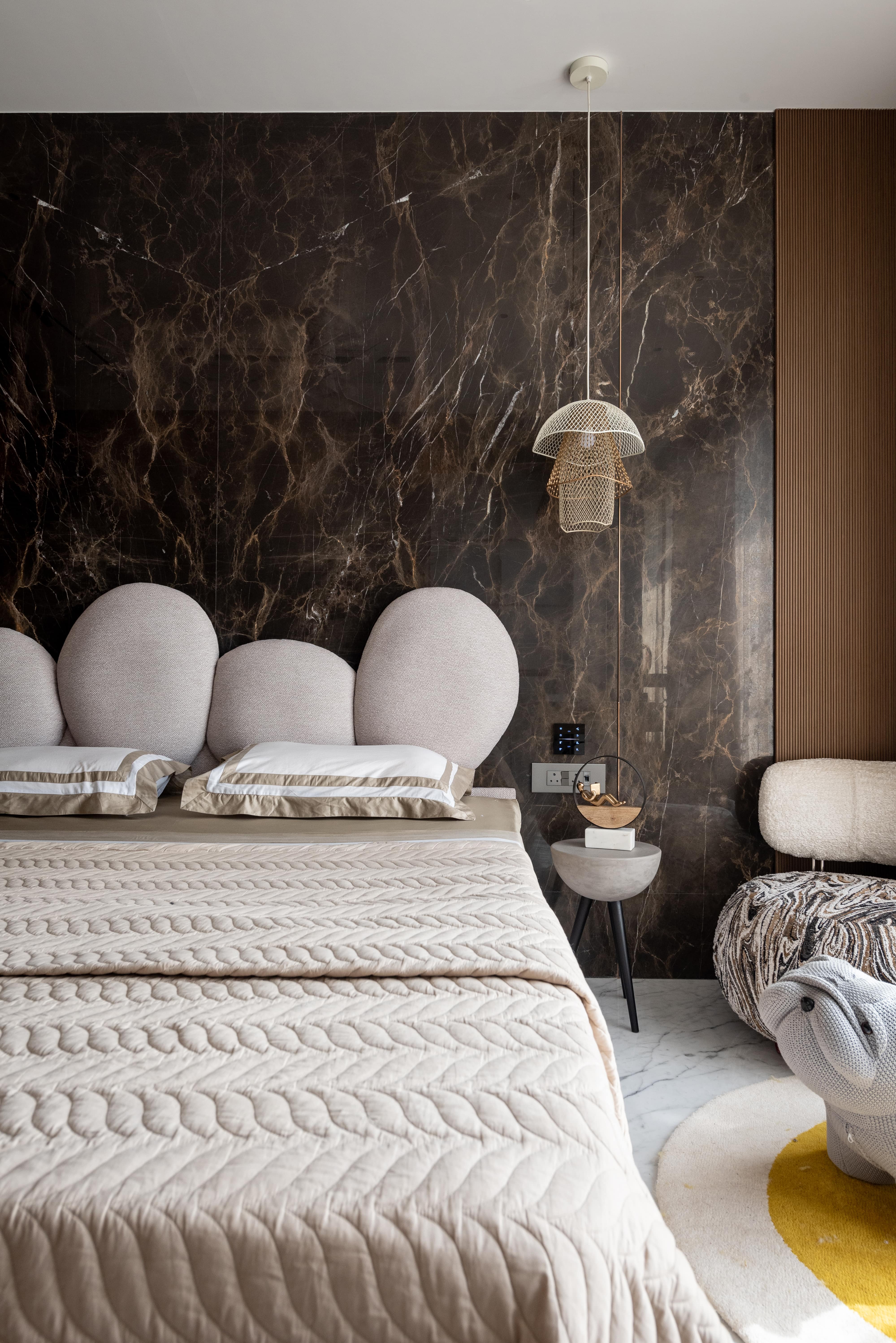 When a longtime client returned with the brief to create something “unforgettable,” GroupARC envisioned a residence that redefines domestic luxury through craftsmanship and material exploration. Spanning 2,200 sq.ft. in suburban Mumbai, the home was designed in tandem with the son’s wedding—demanding a duality of expression: festive in spirit yet timeless in character. Natural stone forms the project’s backbone, explored not just as surface but as a medium of detail. Italian Statuario marble transitions from polished expanses across the floor to hand-carved fluted bands in the living room niche, each 6mm groove painstakingly finished on site. The same interplay of plain and fluted textures extends into the powder bath. A single veneer shade carries this dual language forward, expressed in smooth and ribbed planes to create subtle rhythm and continuity. Private spaces adopt distinct moods within this framework. The son’s suite breaks away from stone and veneer, emerging as an ethereal “white mahal” defined by textured paint and sheer drapery, while other bedrooms highlight unique stone accents and crafted details. Bathrooms are conceived as wellness chambers, each distinguished by singular stones and immersive fittings that elevate daily rituals. Designed around a moment of cultural significance, the house balances festive exuberance with enduring calm. It is as much about orchestrating mood through light, texture, and materiality as it is about creating architectural order. What emerges is a residence crafted with the precision of a couturier and the sensitivity of an artist—contemporary, celebratory, and profoundly personal. 27 Oberoi Enigma is less a residence and more a statement: of craft, of continuity, and of the belief that true luxury is born from authenticity of material and intensity of detail.
