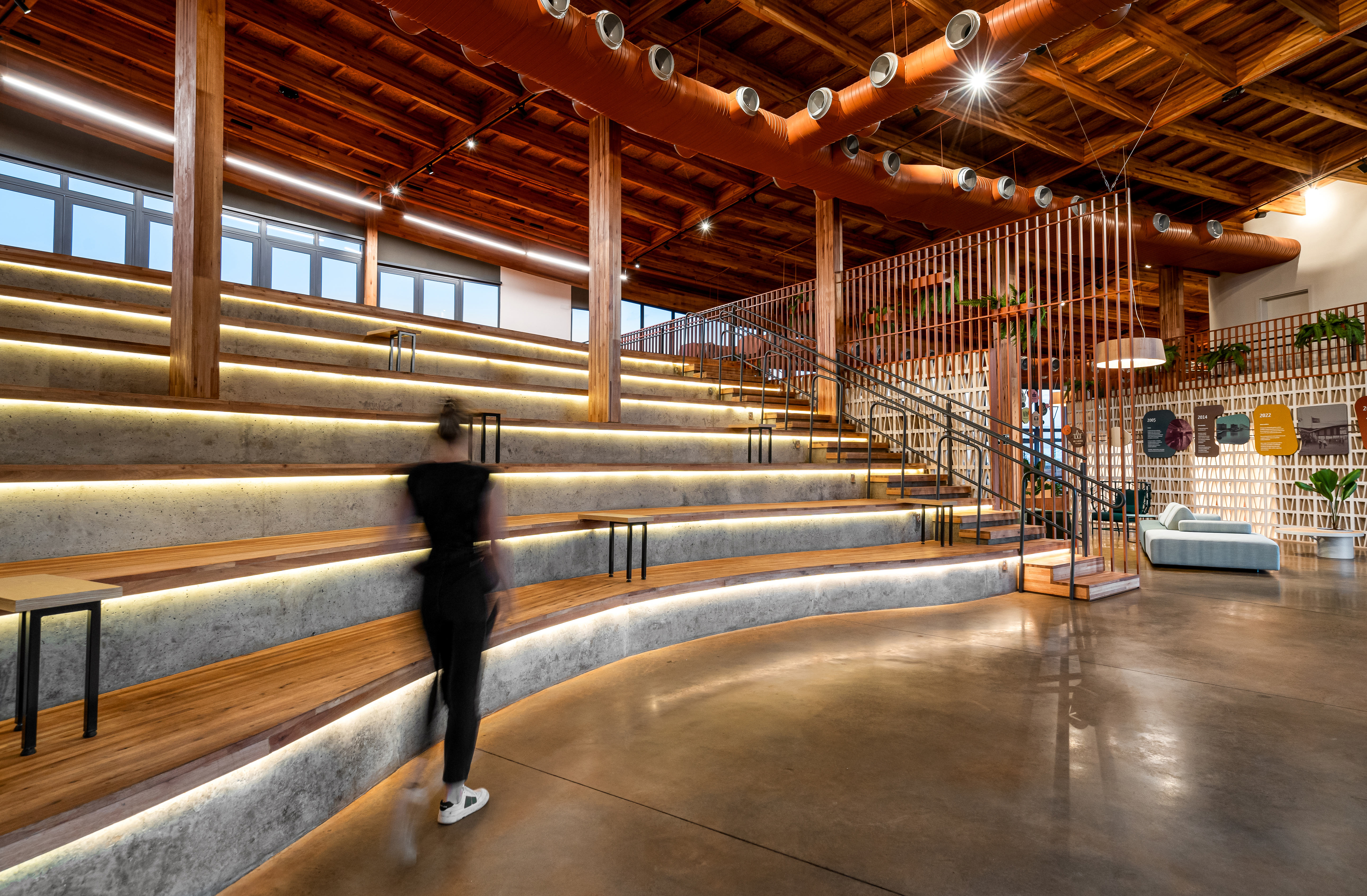 Casa Una is a multi-purpose public building located within Parque Una, a mixed-use urban development in Uberlândia, Brazil. Conceived as a central hub for community life, it accommodates social, cultural, educational, and commercial activities, promoting interaction between residents, visitors, and the city. With a total area of 1,060 square meters, the project emphasizes adaptability, sustainability, and a seamless relationship with its surrounding landscape. Its program includes a reception lounge, neighborhood model, sales and administrative offices, meeting rooms, a mezzanine overlooking the park’s lake, an open-air auditorium, and an educational zone. The comedoria serves meals and refreshments, reinforcing the building’s welcoming and inclusive character. The architecture is defined by a curved glued-laminated timber roof that seems to float above the park, extending beyond the envelope to form shaded transitional zones between interior and exterior. Environmental strategies such as cross ventilation, passive cooling, and the use of renewable materials minimize energy demand while enhancing user comfort. Interiors celebrate material honesty and flexibility, with exposed wood surfaces strengthening the connection to nature and local building traditions. Modular furniture configurations support diverse activities — from exhibitions and lectures to informal gatherings — allowing the space to adapt fluidly to different uses. Open and accessible to the public, Casa Una exemplifies an approach to integrated urban architecture that unites structure, landscape, and community. It represents a model for sustainable civic buildings in emerging urban contexts, translating environmental responsibility into a warm, engaging, and inclusive spatial experience.