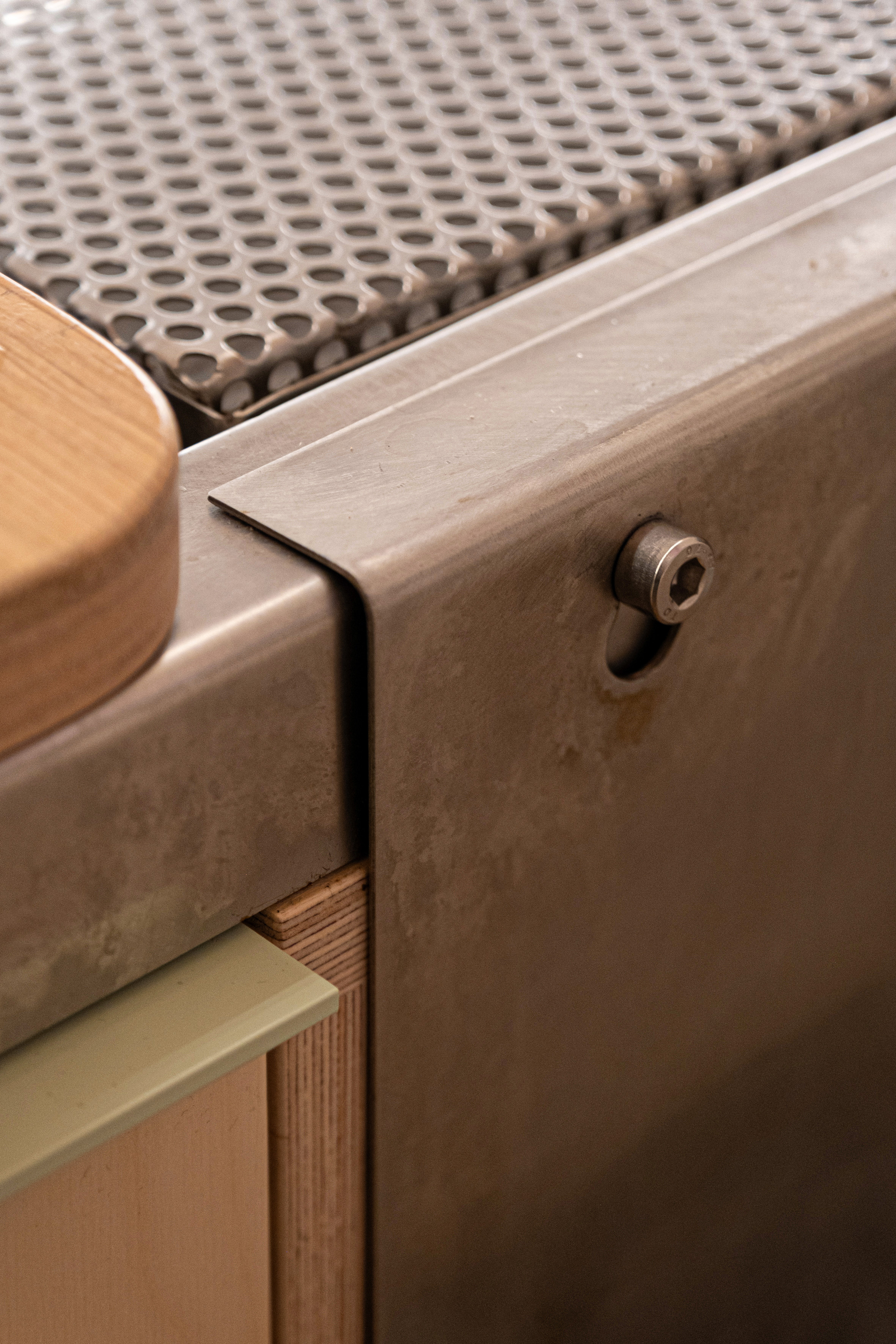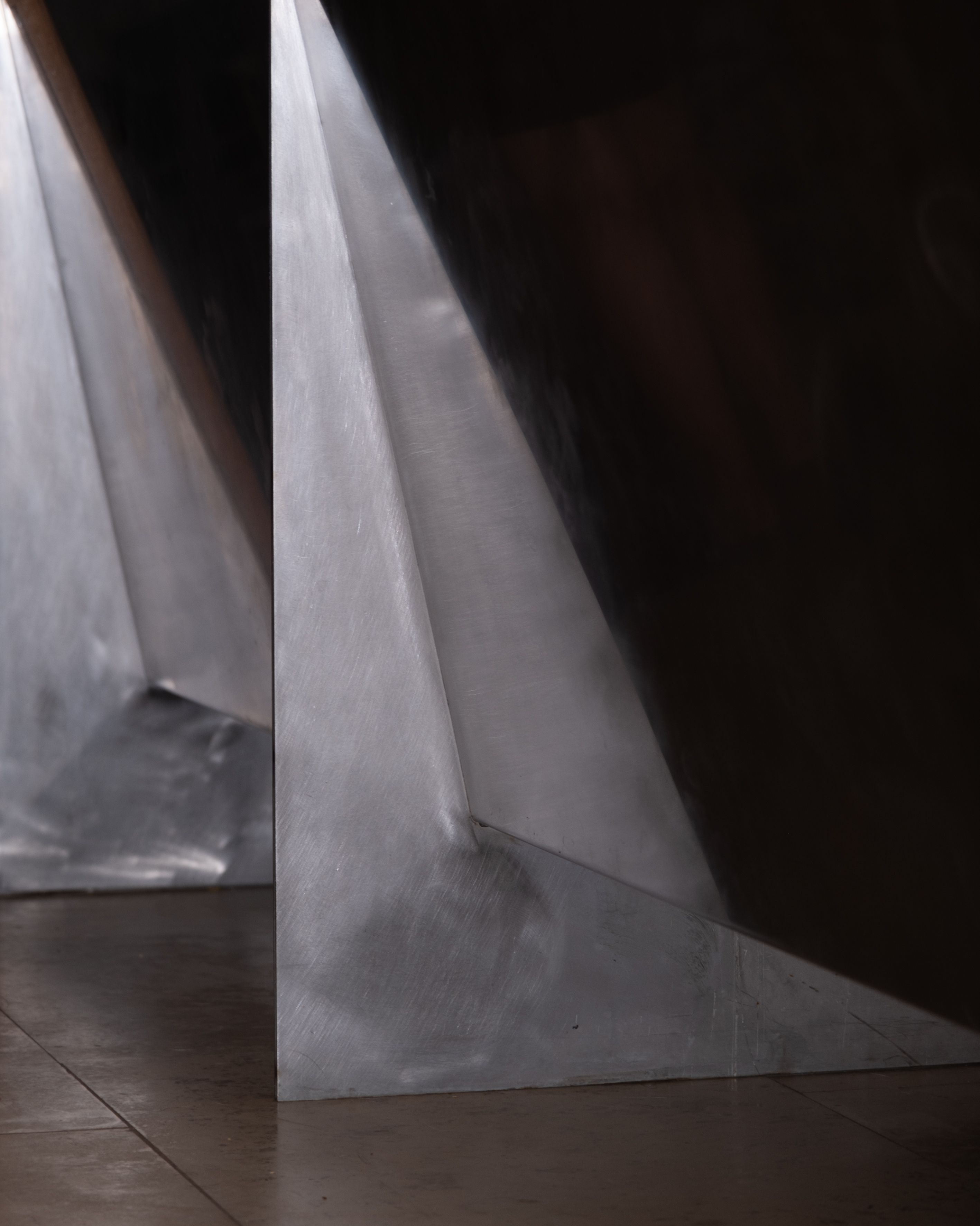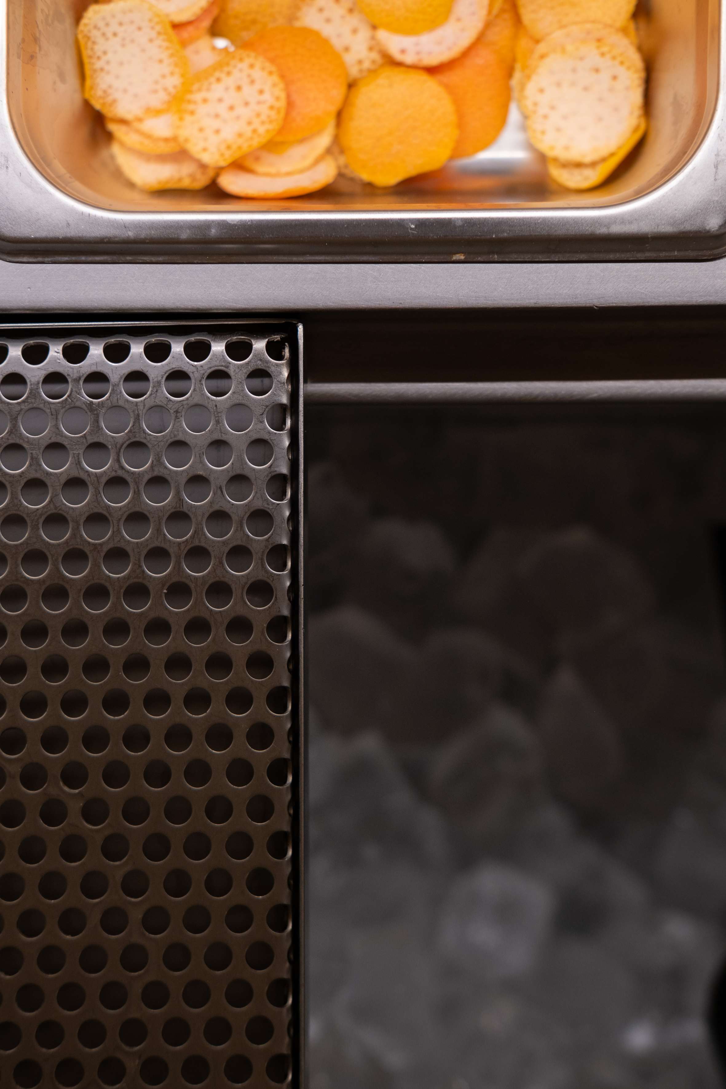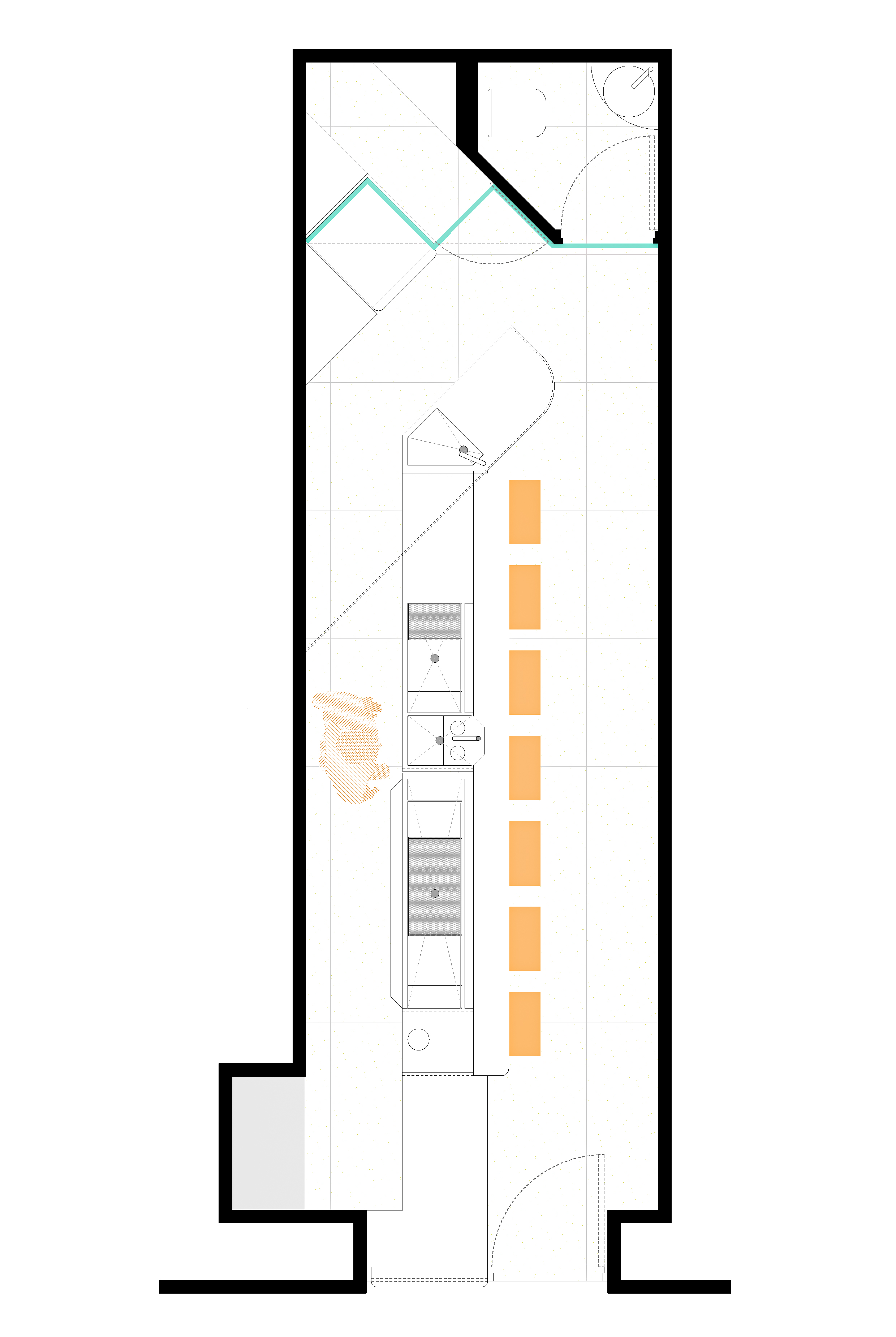 THE PROJECT The project lies within a small, linear vaulted building in the old town of Chania. This peculiar space called for a clean design that could make the best out of the limited area. The design is based on the combination of three elementary geometries. THE BAR First comes the linear bar, that runs from the outer façade to the back of the room, and splits it into two parts, accentuating the perspective of the narrow space. Its’ profile consists of a folded stainless steel sheet, which provides room both for the customers’ seats and the bars’ utilities. This custom piece incorporates all the bar’s electrical wiring and plumbing, leaving the ancient shell and the stone floor intact. The bar is complimented with a custom-made linear lighting piece, which also contains the toilet’s ventilation and runs from the back of the room to the exterior façade. THE MIRROR The second piece is a zig-zag surface at the back of the space that sets the outline of the toilet and storage. Its’ space is designed to allow the movement of the staff around the bar, and is layered with mirror panels, in order to render it “invisible” to the customer’s eyes, “enlarge” the room’s length and make its interior perspective more intense. THE CURVE Last comes the curve. At the end of the bar, a convex surface sets the path around it, while at the same time provides space for storage. It is made out of a perforated steel sheet, that filters the customer’s gaze without constituting an opaque element in this limited space. The rest of the space remains as is, with plastered walls and the vault’s stonework visible to the eye.