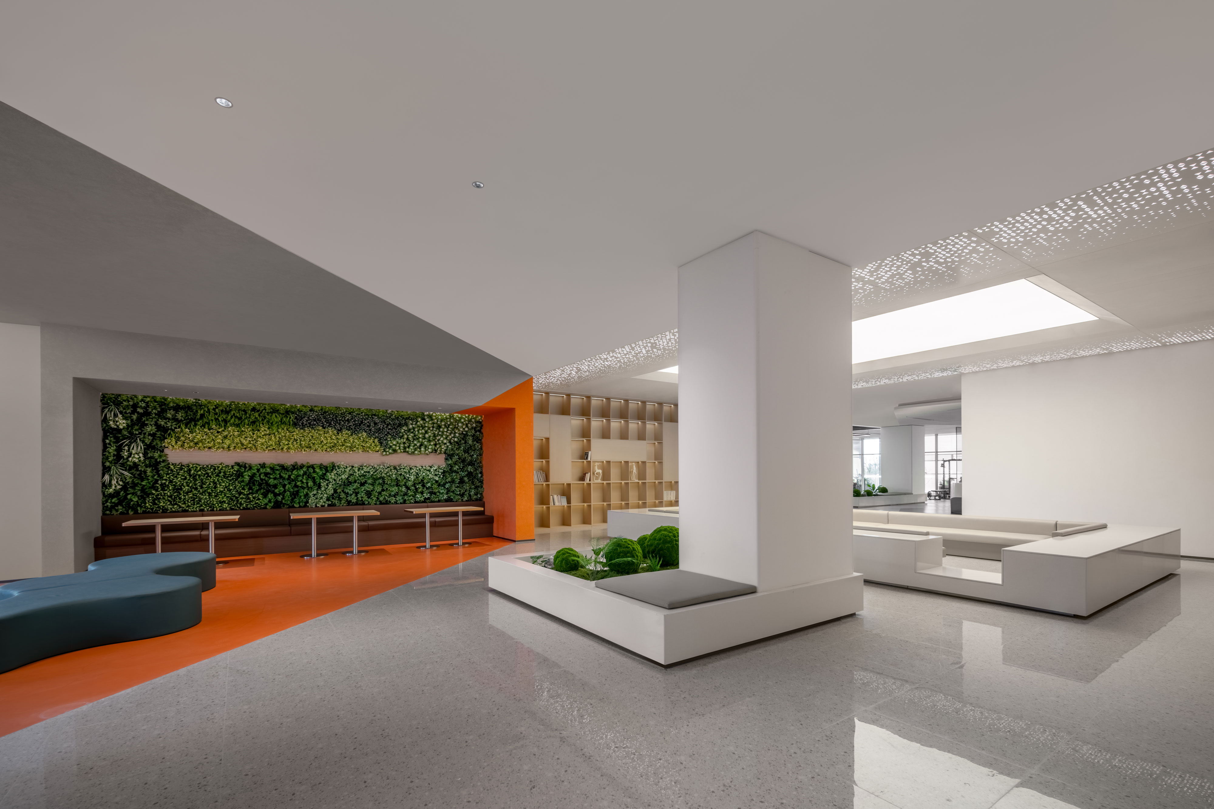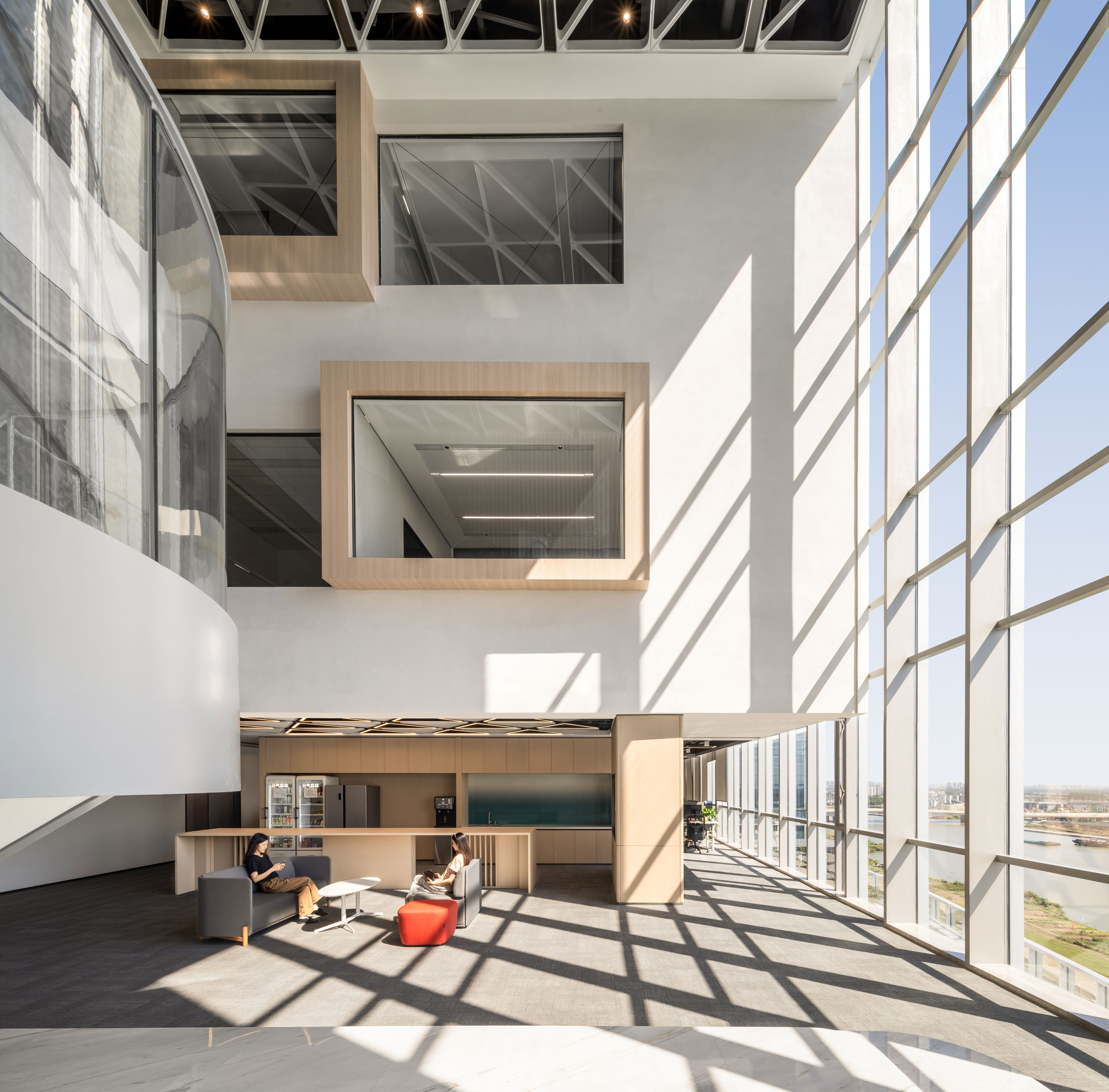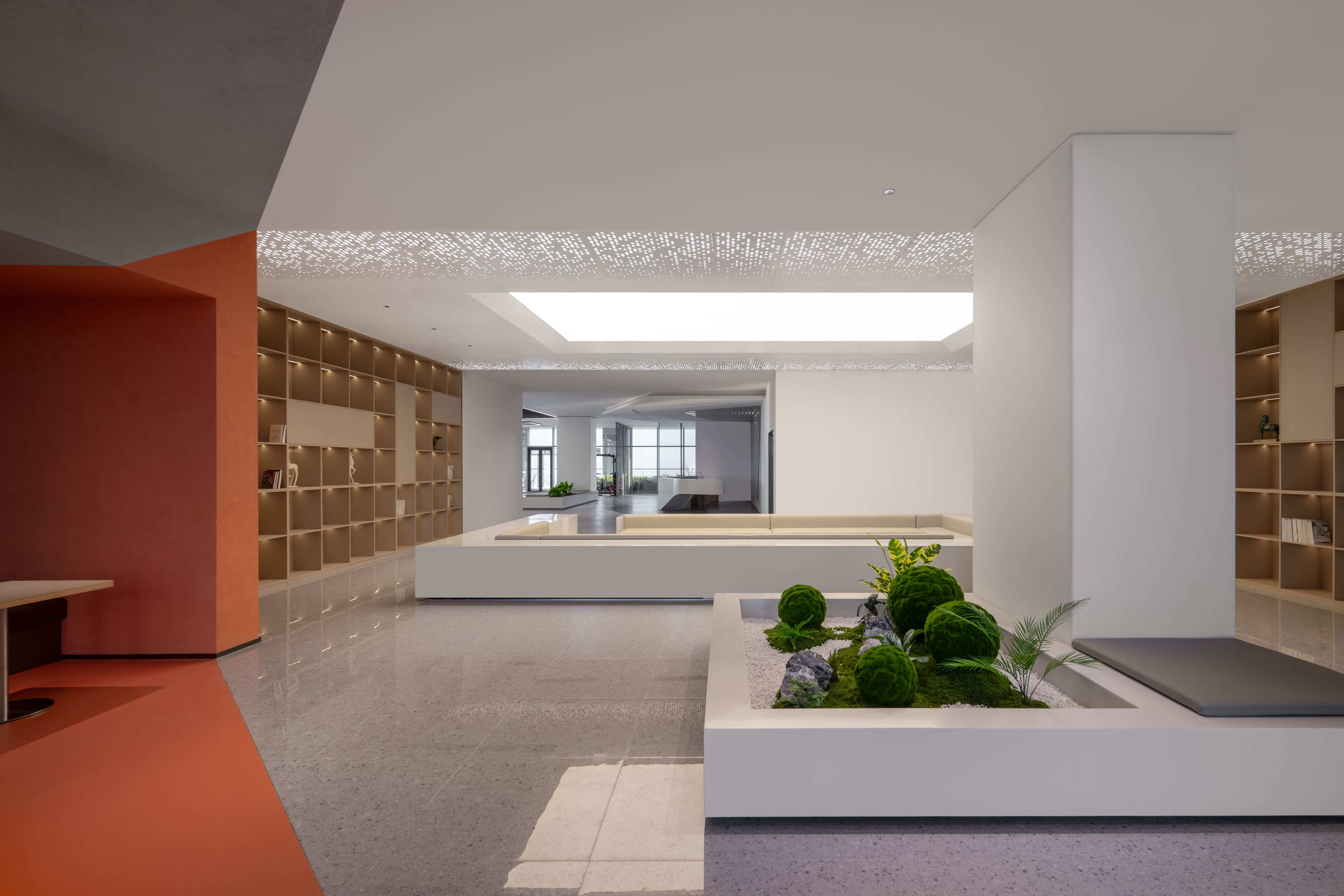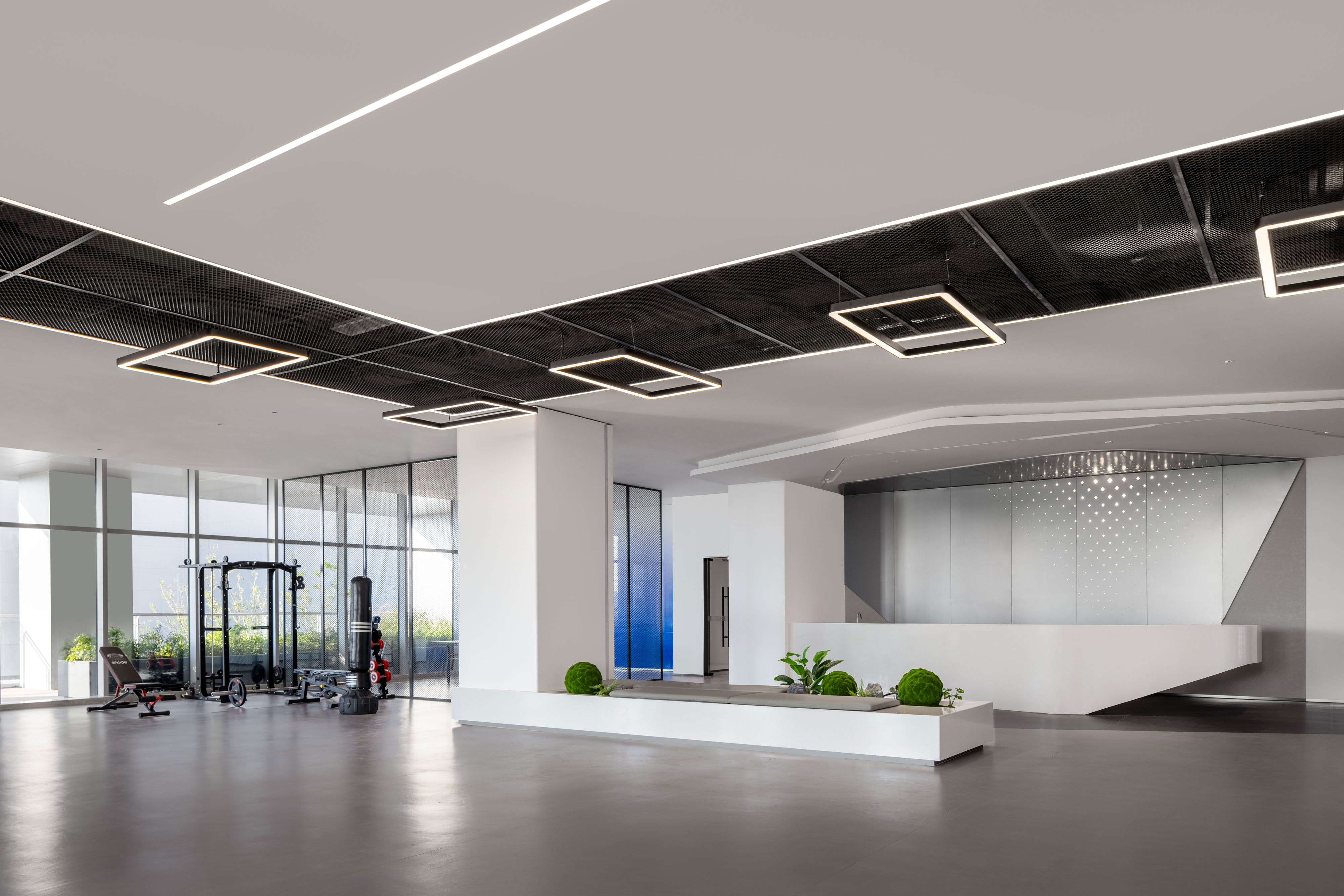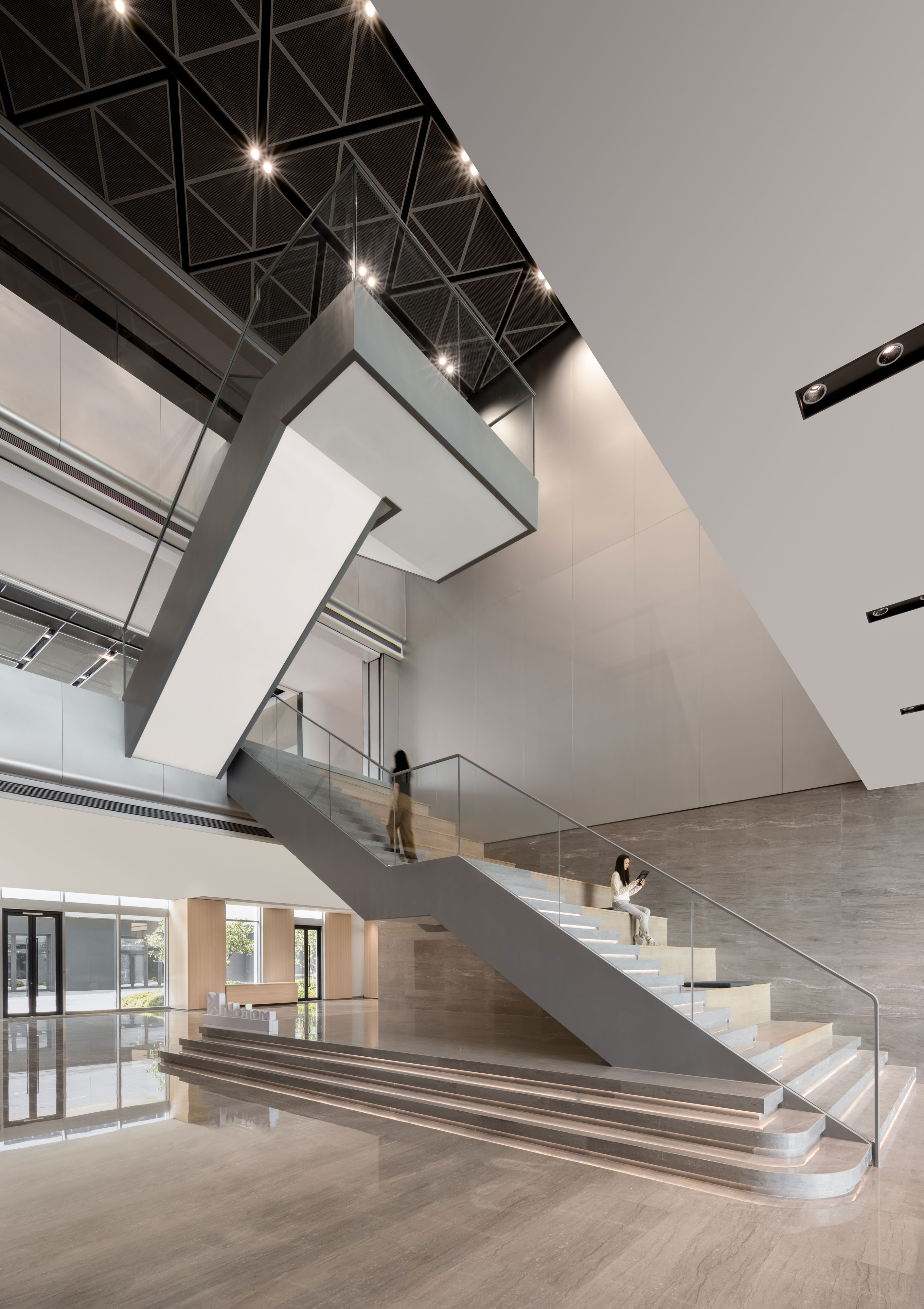 iMotion Technology (01274.HK) is a technology-driven enterprise distinguished by its advanced autonomous driving algorithms and outstanding integrated software-hardware capabilities. The company’s global headquarters is located on the banks of the Wusong River in Suzhou Industrial Park, with a total construction area of approximately 72,000 square meters. Among them, the 6,068-square-meter Cultural Center encompasses a digital exhibition hall, café, business reception area, library, and gym. The space planning and interior design were undertaken by Patton CMC, with the goal of enriching corporate culture and inspiring greater internal motivation among employees. The design fully leverages the building’s generous ceiling heights and riverside location to create an open and light-filled cultural environment. Public spaces are concentrated in the atrium areas between the 1st–3rd floors and 11th–13th floors. During the design consultation process, Patton CMC avoided superficial visual displays, instead allowing the brand’s DNA to naturally permeate both visitor and employee experiences. The digital exhibition hall, located on the northwest side of the first floor, features a luminous ceiling and marble flooring that together evoke a clean, high-tech atmosphere. The café, characterized by wood-grain aluminum panels complemented with greenery and warm lighting, offers a cozy and inviting “third space.” The leisure center on the second floor integrates reading, fitness, and psychological wellness functions, clearly separating active and quiet zones while maintaining spatial coherence, enhancing employees’ sense of happiness and belonging. The entire third floor serves as a business reception area, where a walnut wood palette creates a composed and elegant tone. The wine and cigar bar uses diverse materials to convey a refined business experience, while the Chinese private dining rooms emphasize privacy and acoustic comfort, with focused lighting that accentuates the presentation of cuisine and fosters a sophisticated dining ambiance.